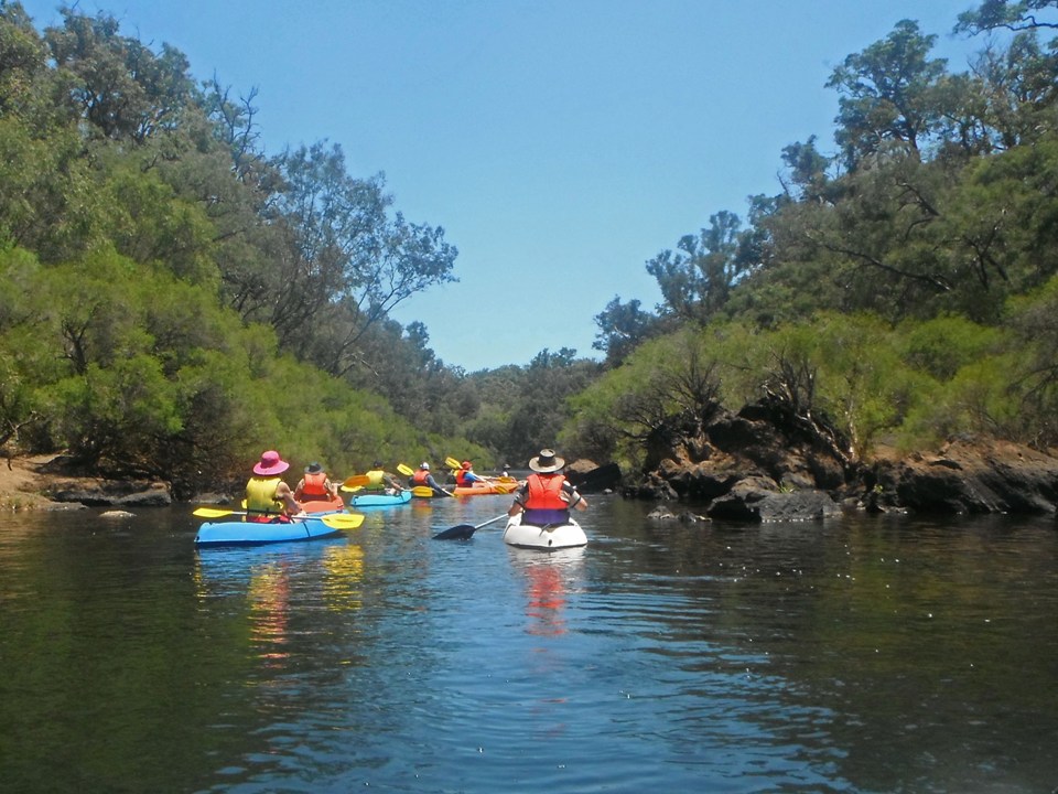 Day 2. Canoe Trip. The river gods smiled on us today with beautiful sunny weather, a gentle breeze and plenty of wildlife along the way. This included a cow and bull grazing along the banks and a 6 foot swimming male kangaroo heading for the opposite bank with dogs in pursuit. We meanered around leafy bends, sandy beaches and traversed some gentle rapids. The end reward was a vigorous game of Canoe Volleyball with most of the points scored by Sarah. At one point nearly everyone's kayak had been tipped.