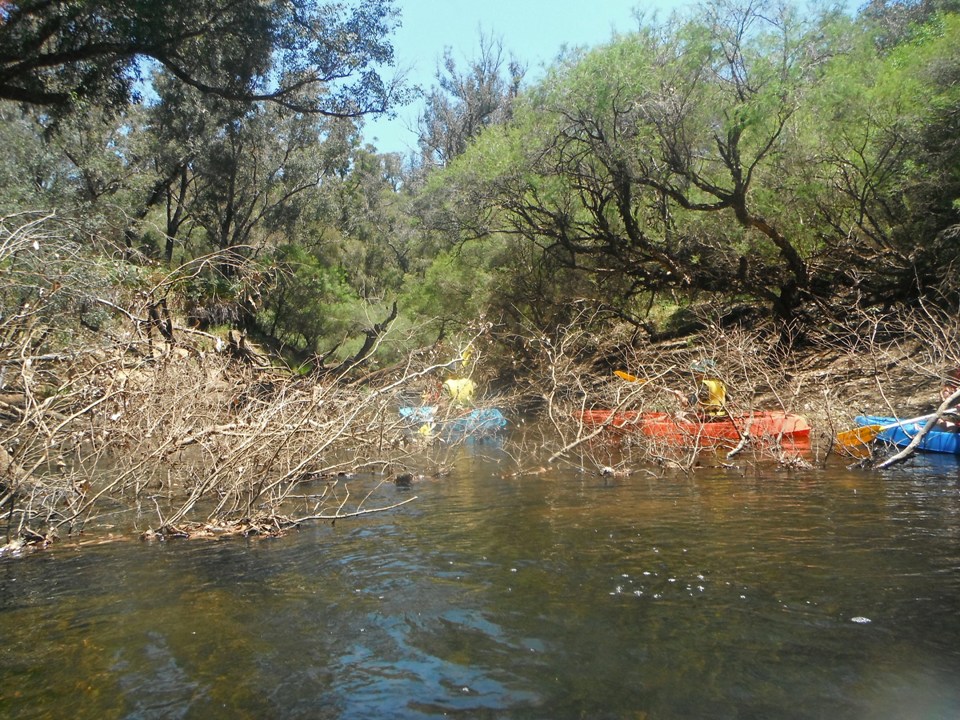 Day 2. Canoe Trip. The river gods smiled on us today with beautiful sunny weather, a gentle breeze and plenty of wildlife along the way. This included a cow and bull grazing along the banks and a 6 foot swimming male kangaroo heading for the opposite bank with dogs in pursuit. We meanered around leafy bends, sandy beaches and traversed some gentle rapids. The end reward was a vigorous game of Canoe Volleyball with most of the points scored by Sarah. At one point nearly everyone's kayak had been tipped.